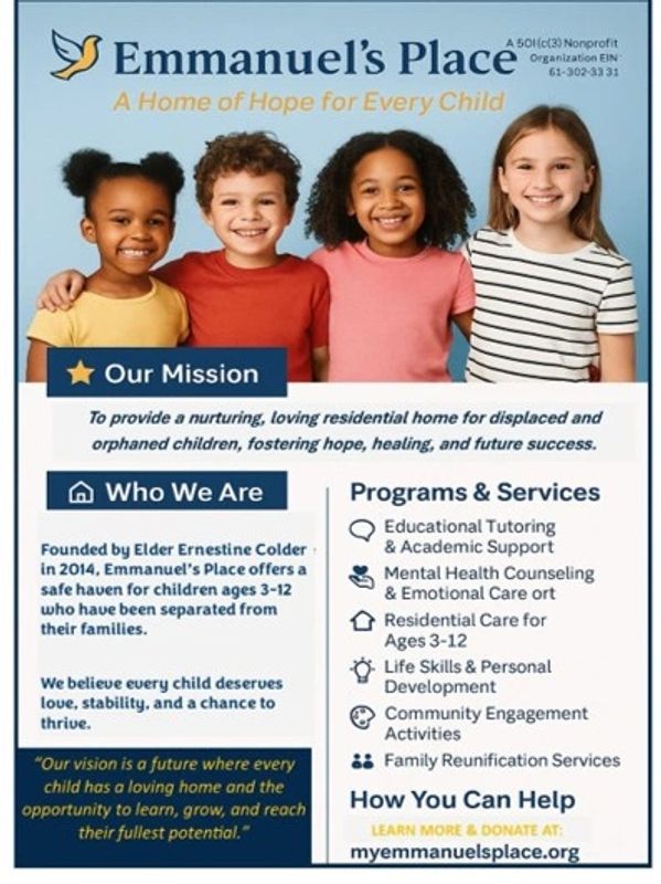 Emmanuel’s Place is so important to me first because I truly love children with all my heart. I have such a strong gift and desire to care for children. For 23 years I worked in Youth Ministry and made a difference in children’s lives. This is my passion; there’s no place I'd rather be!